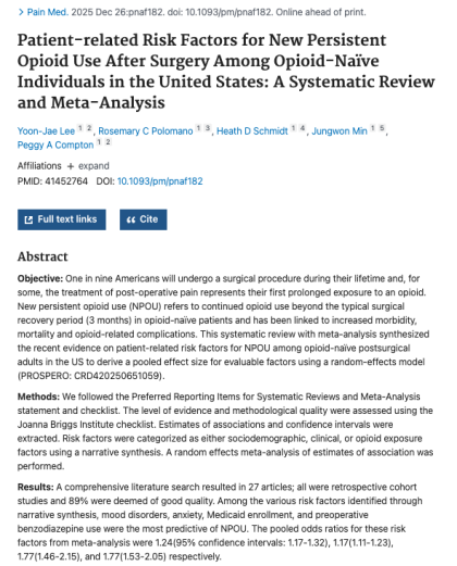 A Meta-Analysis of New Persistent Opioid Use by Yoonjae Lee and Dr. Schmidt